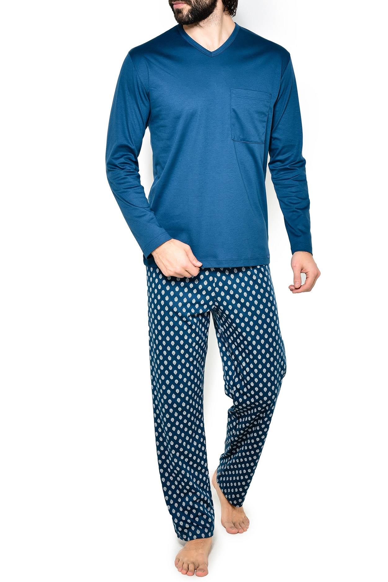 Пижама с принтами (Футболка с длинным рукавом и брюки) из тонкой дышащей мягкой ткани Calida 41480к_517 Синий