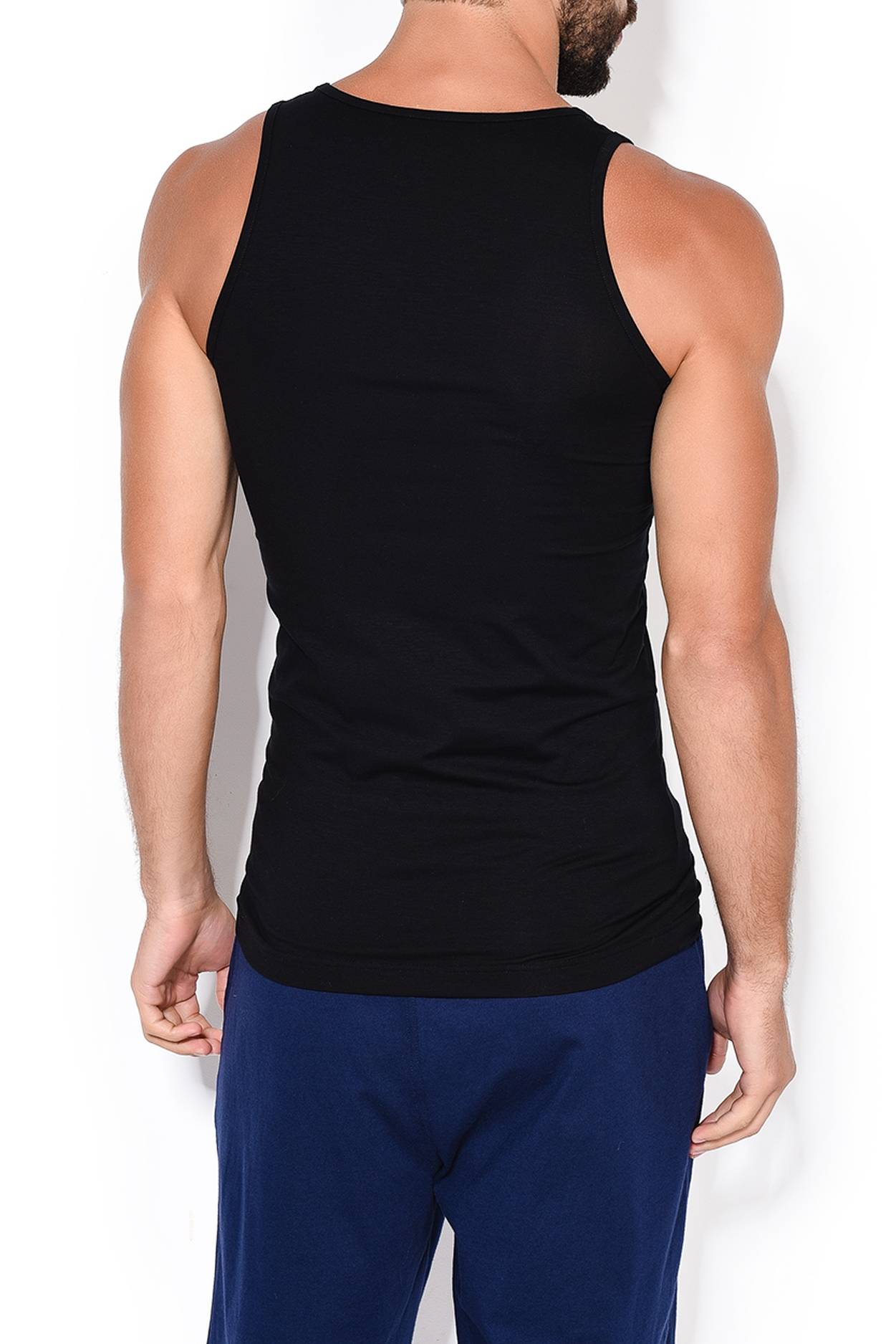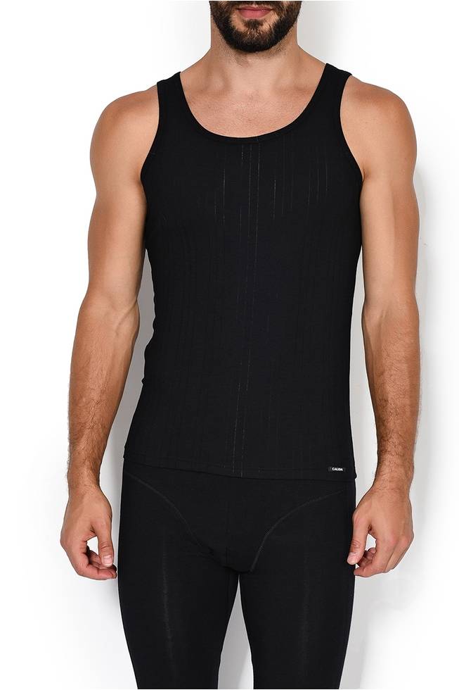 Мужская майка черная с вырезом лодочка с широкими лямками из тонкой дышащей мягкой ткани Calida 12365к_992 Черный 992