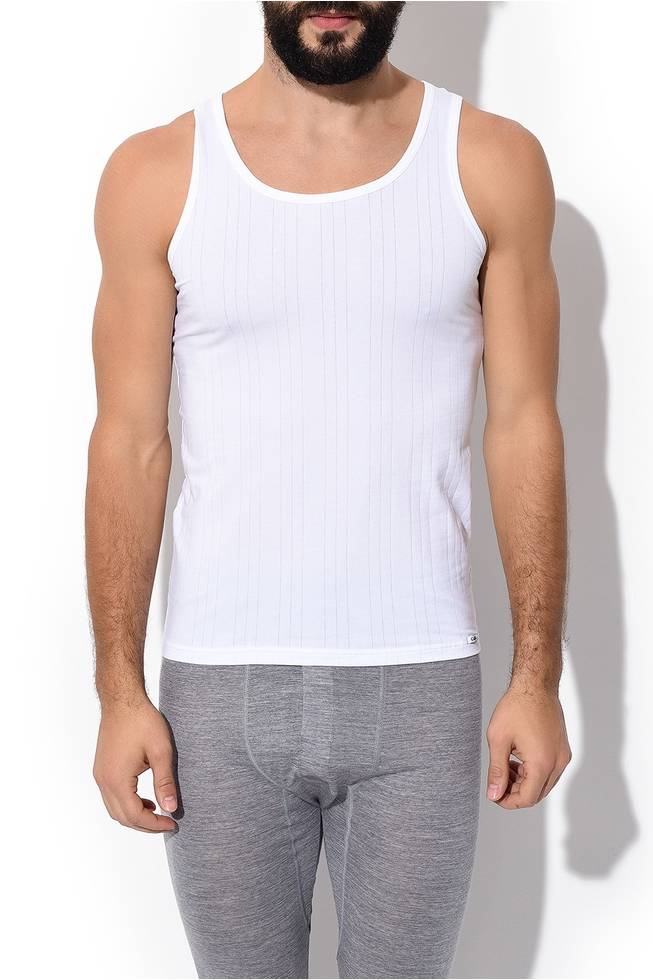 Мужская майка белая с вырезом лодочка с тонкими лямками из тонкой дышащей мягкой ткани Calida 11267к Белый 1