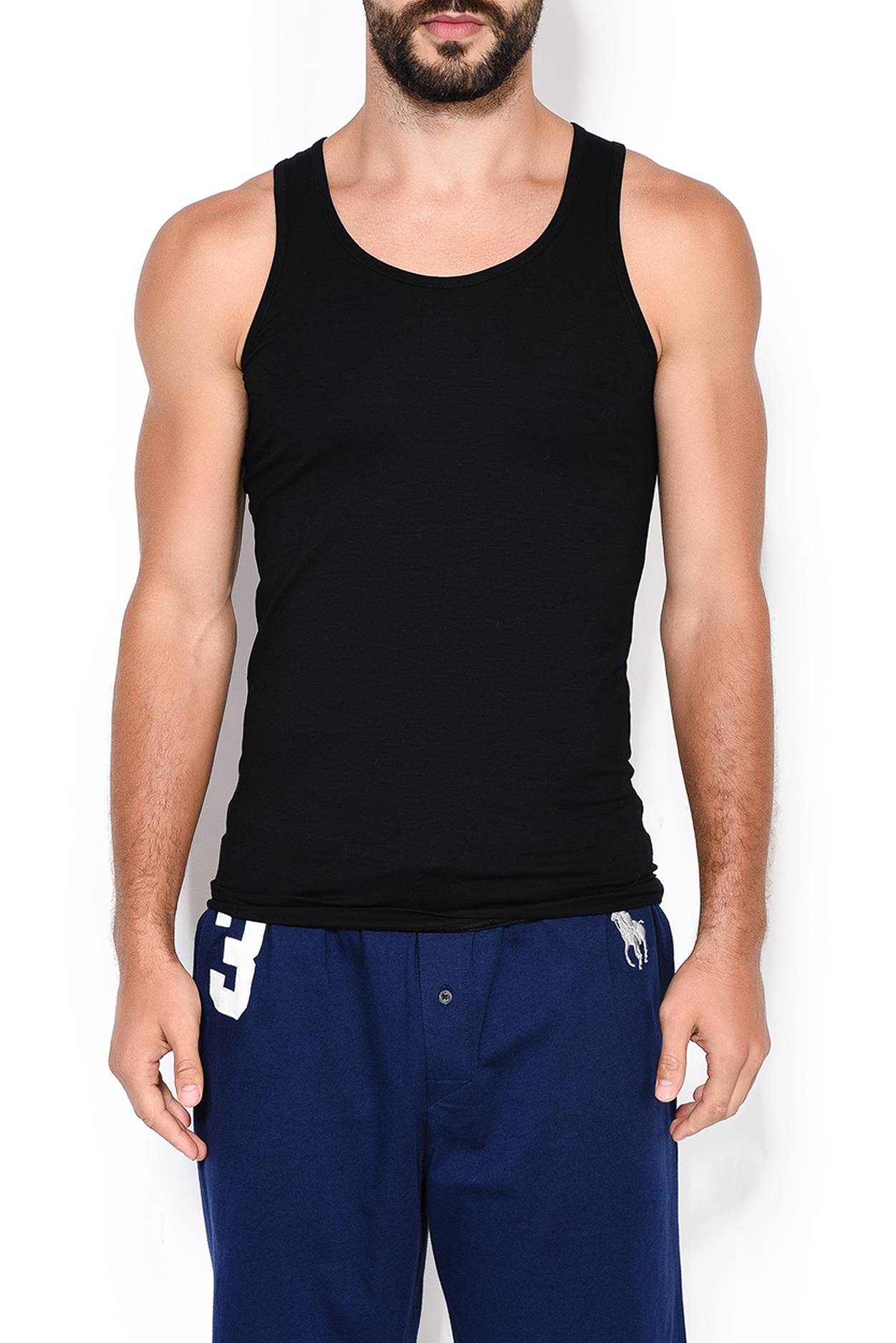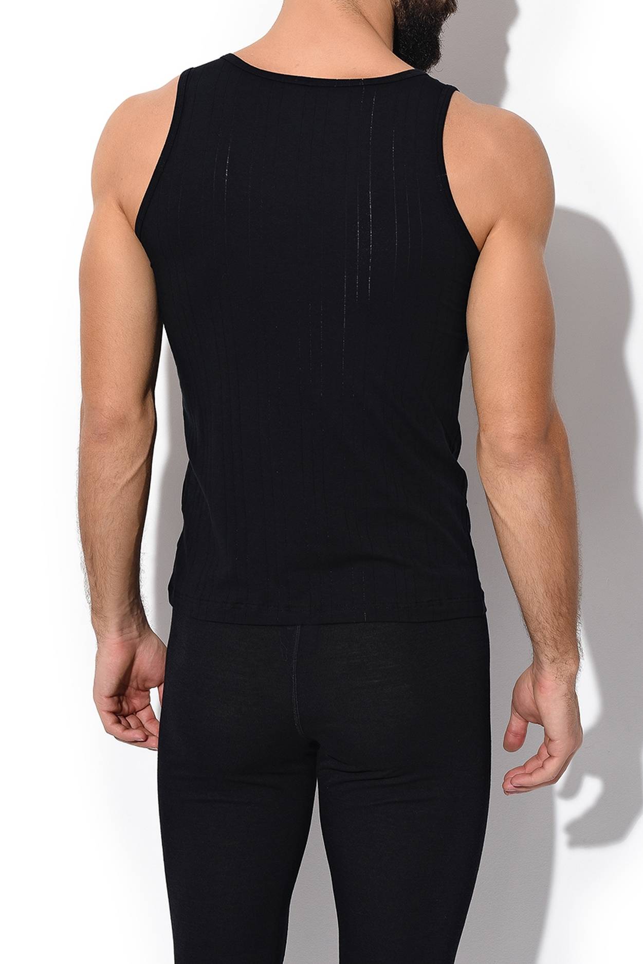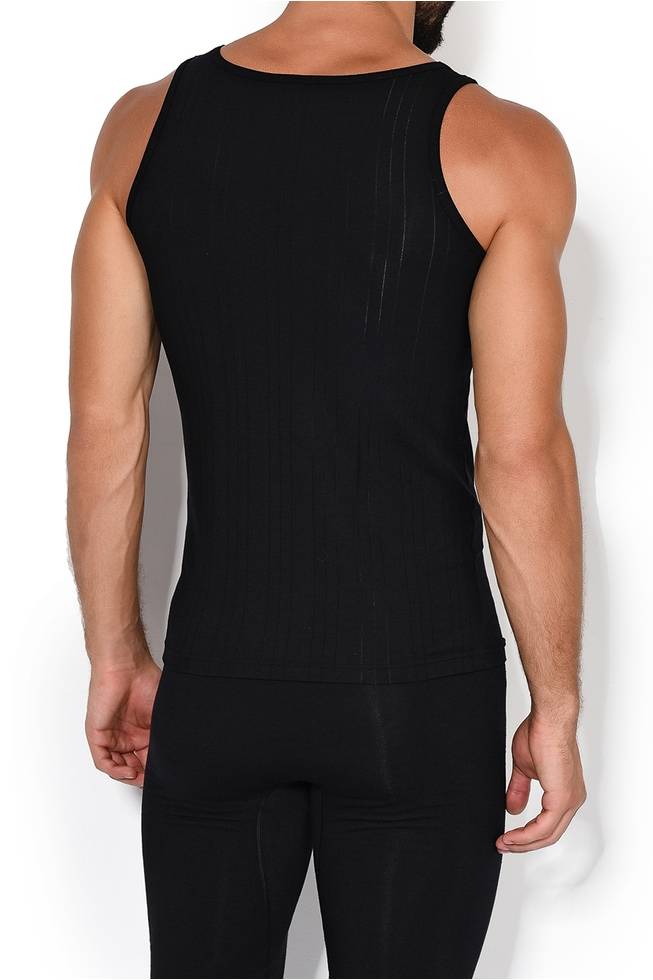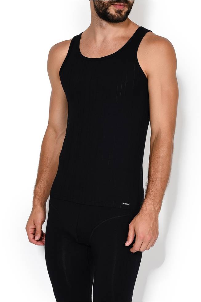 Мужская майка черная с вырезом лодочка с тонкими лямками из тонкой дышащей мягкой ткани Calida 12090к_992 Черный 992