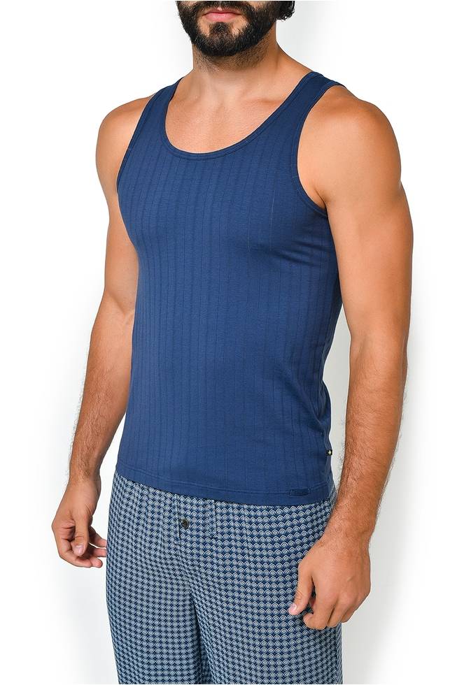 Мужская майка полосатая с U образным вырезом с широкими лямками из тонкой дышащей мягкой ткани Calida 12986к_509 Синий 509 imdigo mood