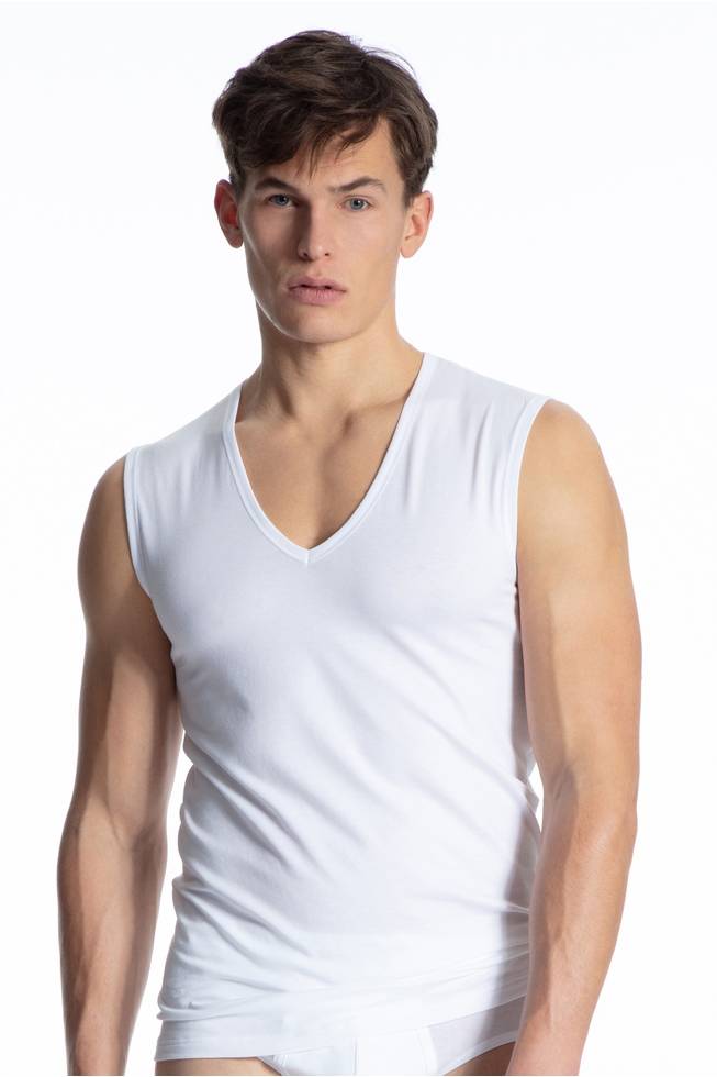 Мужская майка белая с V образным вырезом с лямками во всё плечо из тонкой дышащей мягкой ткани Calida 13090к_001 Белый 1