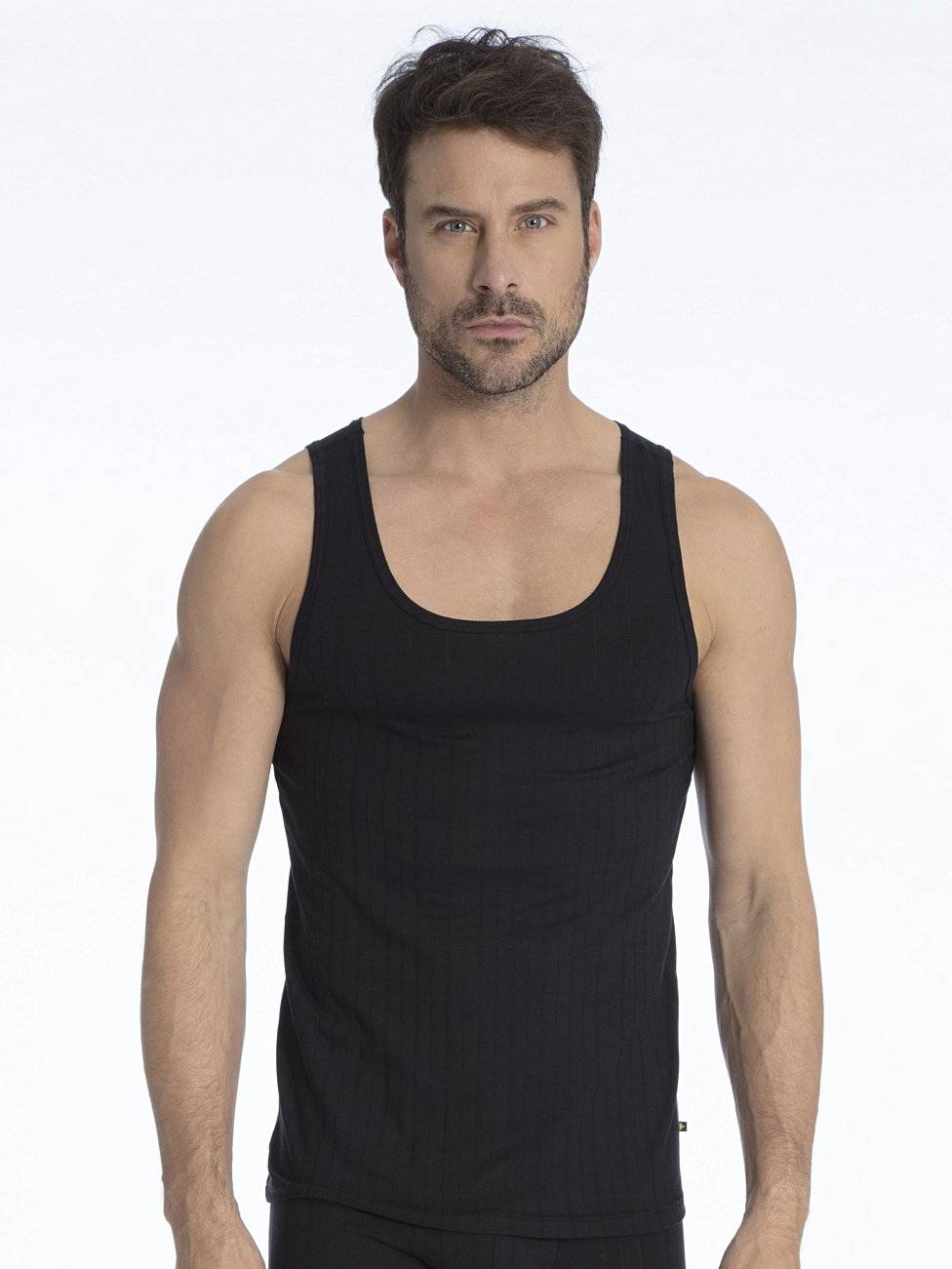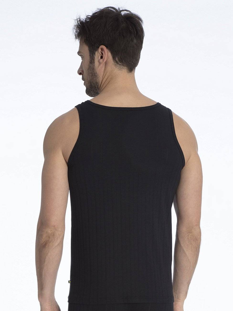 Мужская майка черная с вырезом лодочка с тонкими лямками из тонкой дышащей мягкой ткани Calida 12090к_992 Черный 992