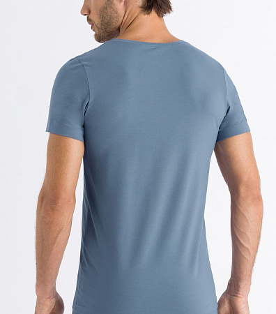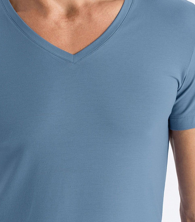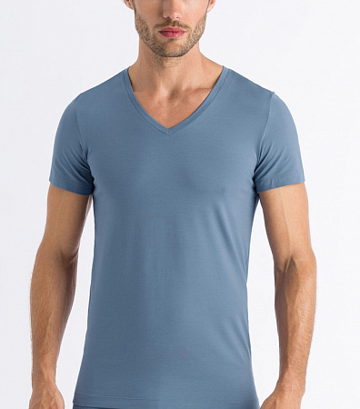 Мужская футболка голубая с V образным вырезом из тонкой дышащей шелковистой ткани Hanro 073089ханро_1554 Голубой 1554