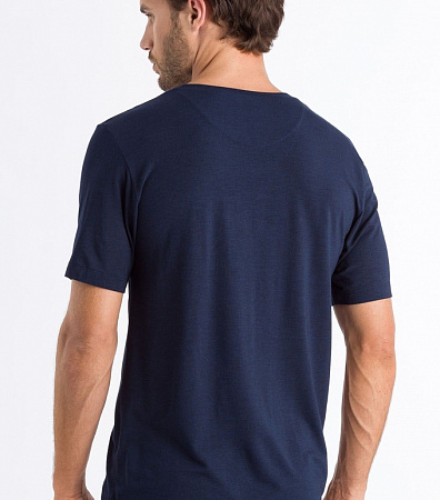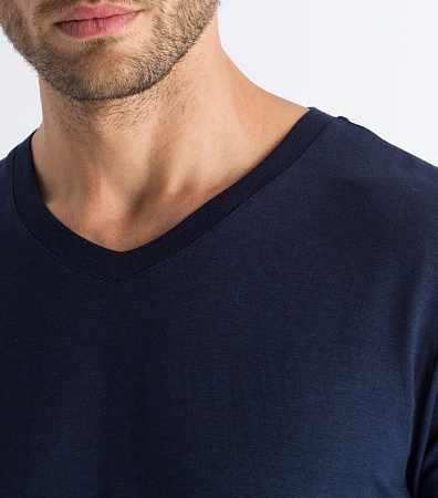 Мужская футболка синия с V образным вырезом из тонкой дышащей мягкой ткани Hanro 075035ханро_1610 Синий 1610