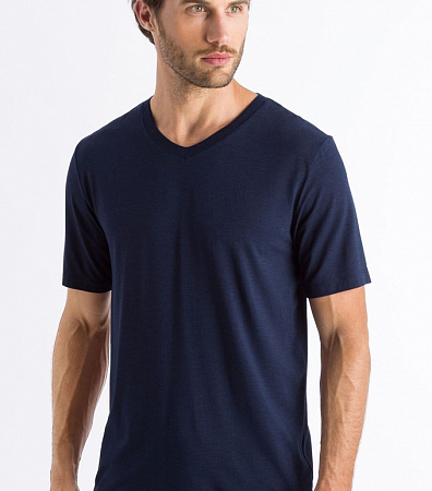 Мужская футболка синия с V образным вырезом из тонкой влагоотводящей шелковистой ткани Hanro 074070ханро Синий 593
