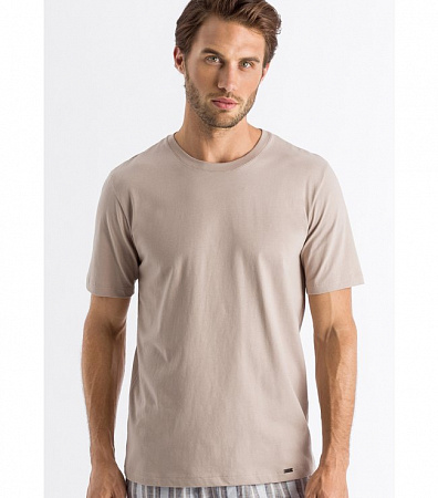 Мужская футболка светлая с вырезом лодочка из дышащей мягкой ткани Hanro 075050ханро_1855 Бежевый 1855