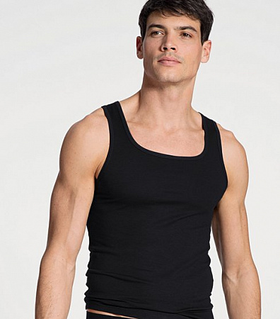Мужская майка черная с квадратным вырезом с тонкими лямками из тонкой дышащей мягкой ткани Calida 12660к Черный 992